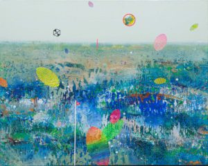 이장하의 ‘지평(地平)에서’ 전은 경계선상의 시공간인 지평들이 등장한다. 지상적 존재들은 삶의 터전이 대부분 지평 아래이며, 그곳은 생사고락을 비롯한 모든 사건의 장(場)이 된다. 대체로 땅에 해당되는 영역이지만, 그의 작품처럼 재현주의를 벗어난다면 토대로서의 견실함은 흔들린다. 그의 작품에서 지평에 속할 대지는 유체같은 유동성을 가진다. 창공을 연상시키는 지평 위 또한 밀도는 다르지만, 세계를 이루는 조형적 원소들이 운동하는 장(場)이다. 그자체로 무기물인 대지는 수많은 유기체의 흔적을 품고 있다. 지상에 존재하는 생명의 자국들은 유형, 무형의 형태로 남아있다. 기억같은 정신으로도, 사물이나 잔해같은 물질로도 남는다. 그는 ‘기억 어딘가에 잠재되어 있는 드넓은 지평의 풍광…그곳엔 생명의 숨결과 발자취, 그리고 무수한 세월의 흐름이 배어있다’고 말한다. 하지만 많은 것들이 코드화되는 시대, 인간의 경험은 점차 그러한 대지적인 것을 떠나고 있다.