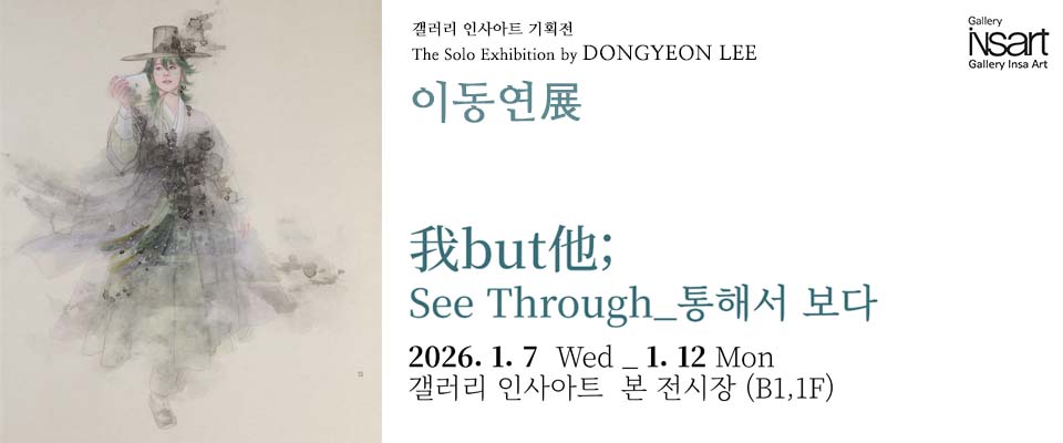 이동연 개인전 Previous Next 이동연 개인전 See Through_ 통해서 보다이동연2026 01/07 – 01/12본 전시장 (1F) 특별 전시장 (B1) NEXT마주 앉아 빚은 달 관리자2026-01-03T13:52:04+09:00